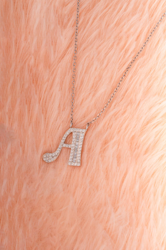 Celebrate your style with this 18-inch alphabet pendant necklace featuring the letter "A". Designed in sterling silver, the pendant is encrusted with sparkling cubic zirconia stones—round brilliance and baguette cuts—for a glamorous, eye-catching look. Perfect for gifting or personal wear, this piece adds a personalized touch to both casual and...