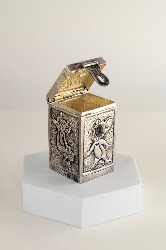 A playful yet elegant collectible, this mini Pure 925 silver piggy bankΒ is crafted with fine detailing and features engraved cartoon characters on its surface. Compact in size, with a hinged lid for easy opening, itβs perfect for keeping tiny treasures, jewelry, or as a quirky desk accessory. Dimensions: Length 2in...