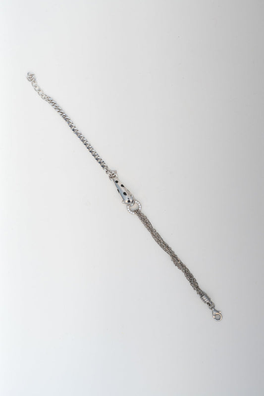 Fierce meets fashionable in this striking silver bracelet, featuring a bold panther-head motif clasp paired with a mix of multi-chain and curb-chain links. Its edgy yet elegant look makes it a statement accessory that stands out, perfect for adding strength and style to your everyday or evening wear. Size: 8...