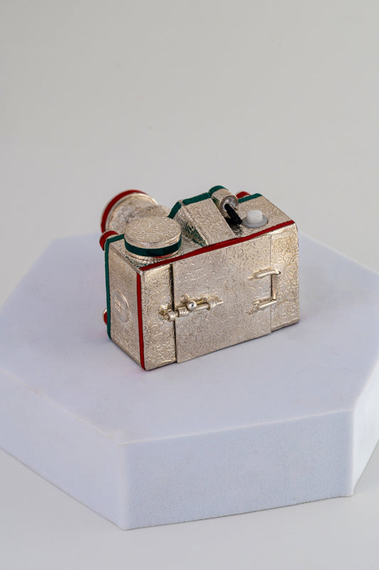 Capture timeless elegance with this Handcrafted Pure 925Β Silver Miniature Camera Showpiece, a collectible designed for lovers of art, photography, and fine craftsmanship. Measuring just 1.5 inches in length and 2 inches in width, this ornamental piece features intricate engraved patterns, accented with red and green enamel details for a vintage...