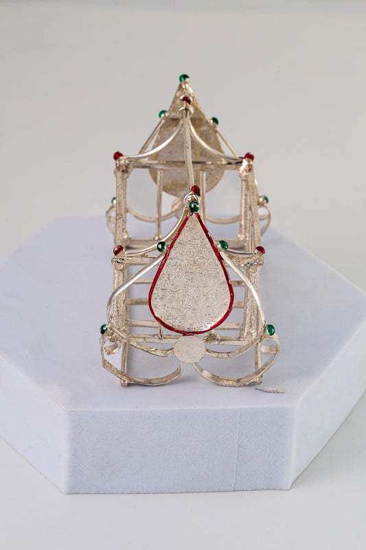 Celebrate tradition and artistry with this Handcrafted Pure 925Β Silver Miniature Baby Cradle (Jhula) Showpiece. Designed with delicate craftsmanship, this cradle features intricate frame work and is adorned with red and green enamel bead accents for a festive touch. Measuring Height 2.25 inches, Width 3.25 inches, and Length 1.75 inches, this...