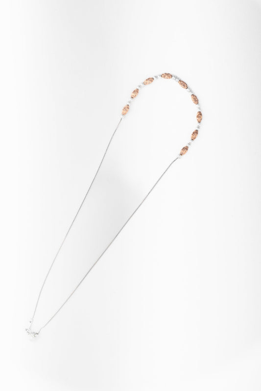 This 18-inch Rose Gold Beaded Necklace beautifully blends modern minimalism with a touch of elegance. Featuring uniquely textured rose gold-toned beads paired with white spacers, this necklace creates a refined and versatile look. Lightweight and stylish, it’s perfect for layering or wearing solo for a chic statement. Type: Beaded Necklace Material:...