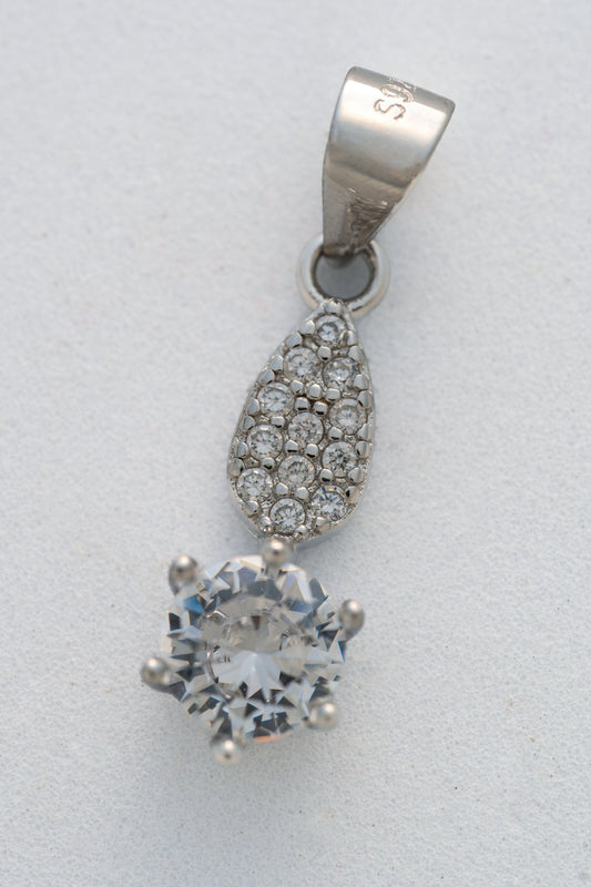 An elegant teardrop pendant featuring a brilliant solitaire stone at the center, framed with delicate accent stones for added sparkle. The fluid teardrop design makes it a timeless piece, perfect for both everyday sophistication and special occasions. Dimensions: Approx. Length 23mm Γ Width 07mm Material: Pure 925Β Silver with polished finish...