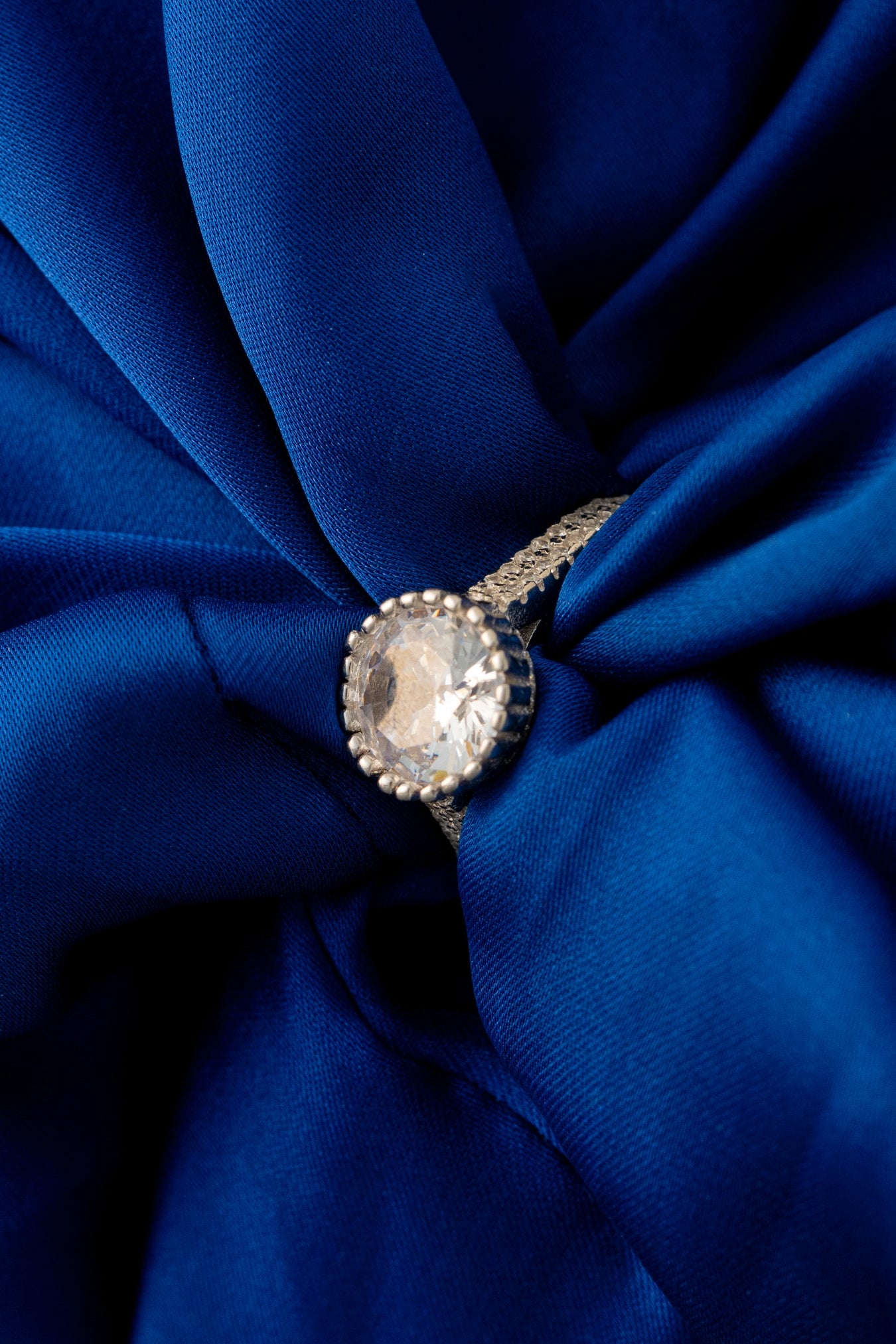 Center Stone: Round-cut cubic zirconia (halo framed)