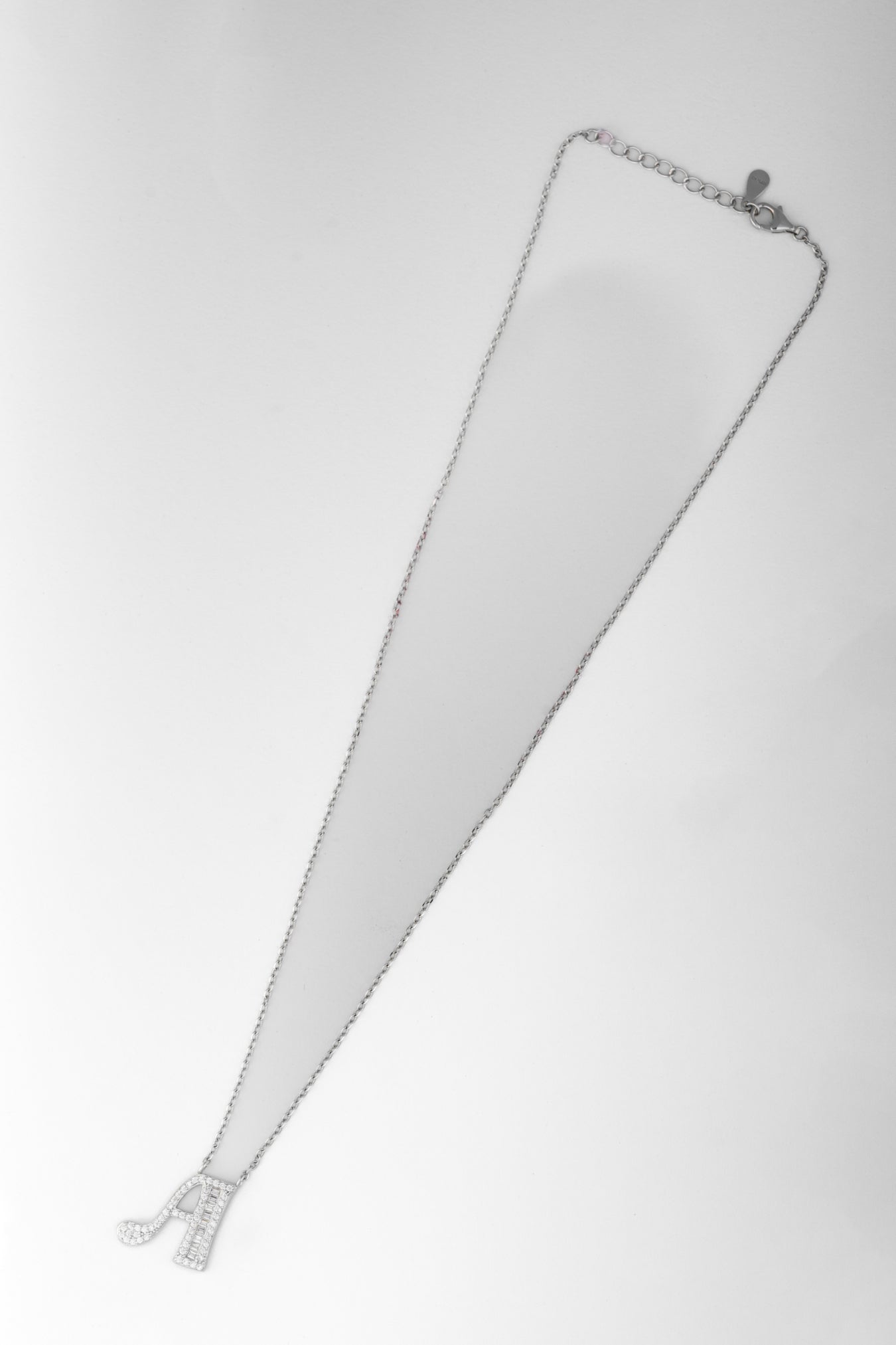Celebrate your style with this 18-inch alphabet pendant necklace featuring the letter "A". Designed in sterling silver, the pendant is encrusted with sparkling cubic zirconia stones—round brilliance and baguette cuts—for a glamorous, eye-catching look. Perfect for gifting or personal wear, this piece adds a personalized touch to both casual and elegant outfits.