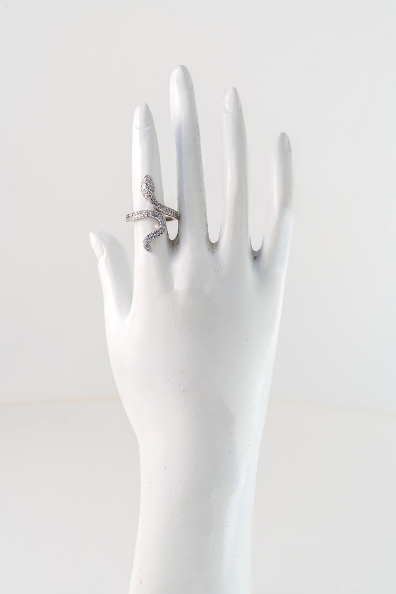 Embrace elegance in motion with this Wave Flow Ring (Size 13). Designed with fluid, curved lines that mimic the rhythm of waves, it’s fully adorned with shimmering pavé-set crystals. This ring brings a sense of grace, movement, and timeless beauty, making it the perfect statement for both casual and dressy occasions.